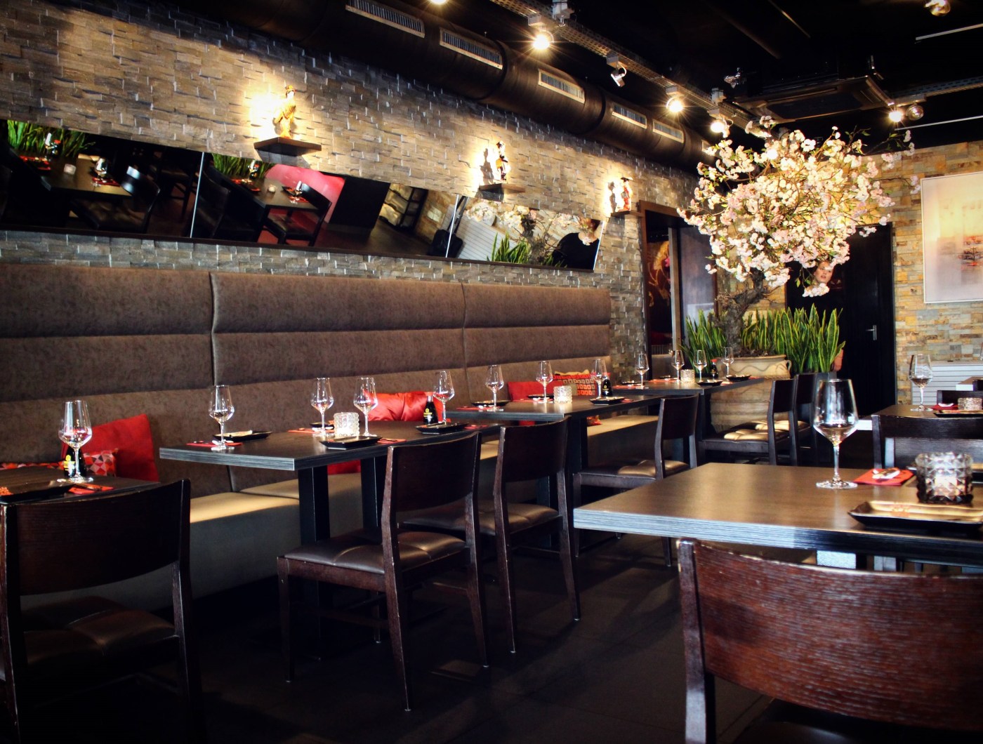 Op een maandag om 18.00 uur heb ik een tafeltje gereserveerd met een vriendin. We worden vriendelijk ontvangen door de gastheer. De aankleding van het restaurant is precies zoals hun omschrijving luidt: strak, modern, maar ook sfeervol. Met de donkere kleuren en de Sakura takken die hier en daar gebruikt zijn is het interieur inderdaad een plaatje! Bijzonder is dat, naast de reguliere tafels, er ook een aantal speciale tafels aanwezig zijn in het restaurant; de Tatami zitkuilen.