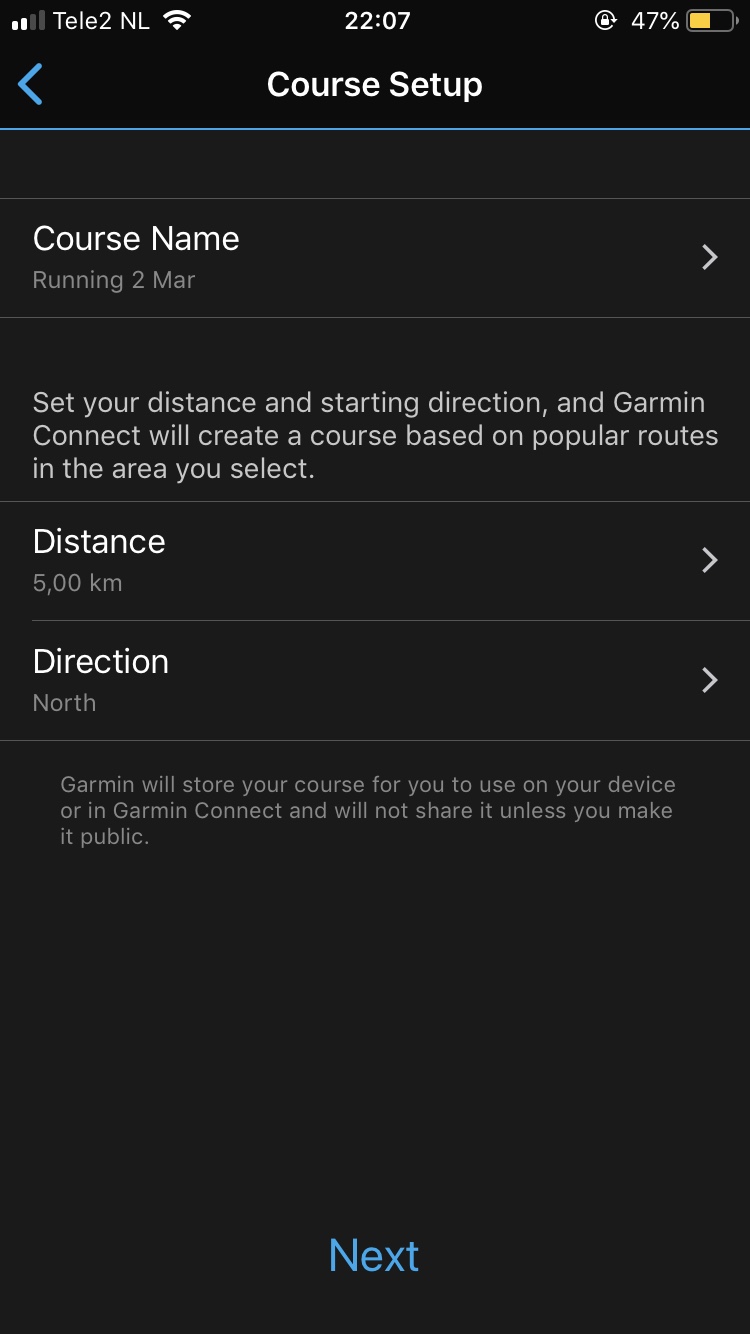 Een van de leukste functies die wordt uitgelegd is die van de koersen (of courses als je hem net zoals ik in het Engels hebt staan!). Wat dit precies doet? In de Garmin connect app navigeer je naar: courses en kies je voor welke activiteit je een course wilt maken en daarna kies je ervoor om een nieuwe course aan te maken. Je geeft een afstand aan en een richting die je op wilt. Garmin maakt op basis van deze gegevens een route voor je, gebaseerd op routes van andere lopers! Ideaal voor op vakantie, of voor mensen die net als ik het oriëntatievermogen hebben van een garnaal om eens een leuk (routebegeleid) rondje te maken. Onwijs leuke functie die ik nog helemaal niet kende!