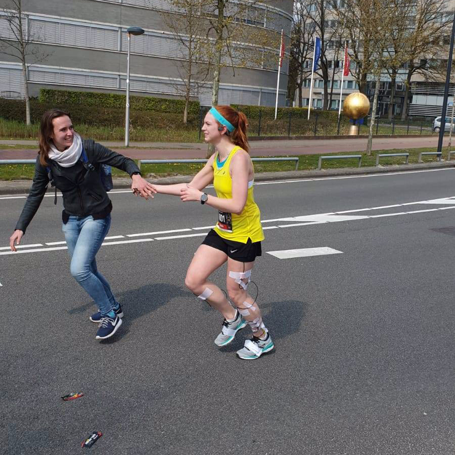 De vrijdag voor de marathon werd het doel gepresenteerd waarvoor wij de data gingen verzamelen: het programma Runner Assist. In dit onderzoek wordt gekeken naar wat vermoeidheid doet met je looppatroon. Met onze data wordt een algoritme ontwikkeld waarvan het de bedoeling is dat er in de (nabije) toekomst een app wordt ontwikkeld die realtime feedback kan geven op verandering van je loophouding en dus mogelijk blessures kan voorkomen! Enorm gaaf en een flinke aanwinst voor alle hardlopers!