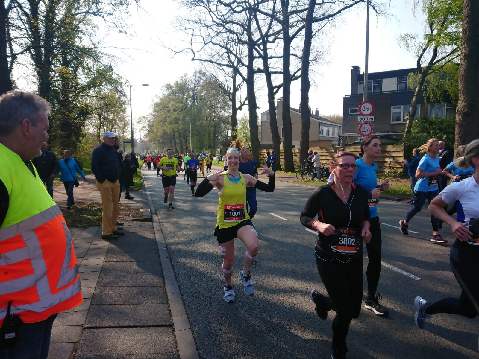 Zodra we richting Glanerbrug rennen zie ik een collega en haar vriend staan, superleuk! Dan is mijn missie; op ballonnenjacht gaan. Gisteren heb ik me namelijk spontaan voorgenomen om met de pacers van 4u15 mee te gaan, maar door mijn latere start zie ik de ballonnen nergens! Ondertussen komen de eerste lopers van de halve en hele marathon alweer via de andere kant van de weg terug van het keerpunt. Ik zie een hoop bekenden, wat extra leuk is, want zo kan ik hen ook nog even aanmoedigen. So far so good!
