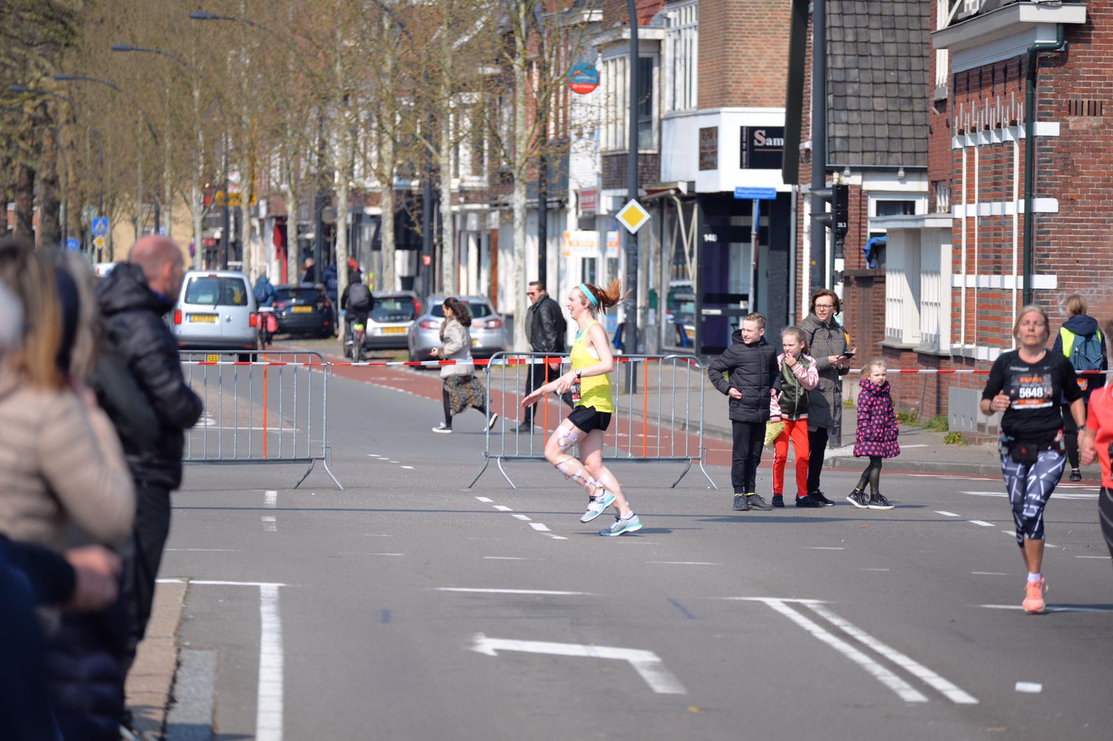 Wanneer we de Hengelosestraat op lopen speur ik de toeschouwers al af naar mijn ouders en vriend. Ik spot mijn moeder en Coen, die zó druk aan het kletsen zijn dat ze amper doorhebben dat ik recht op ze af kom gerend, haha. Na een “hè, jij hoort hier nu nog helemaal niet te zijn joh!”, ren ik langs mijn vader. Dan komt een belangrijk punt, de splitsing tussen de halve en de hele marathon lopers. Gelukkig loop ik met de pacers mee want het is nog een klein beetje chaotisch op dit punt. Maar we gaan soepel door, even verderop zie ik de eerste persoon van RRD staan, al met een tapeje in haar handen. Ook mijn derde belletje krijg ik hier aangereikt. Deze gaat al een stuk minder soepel naar binnen. Maar met een bekertje water is dat vieze gevoel weer weg. Op naar Lonneker weer!