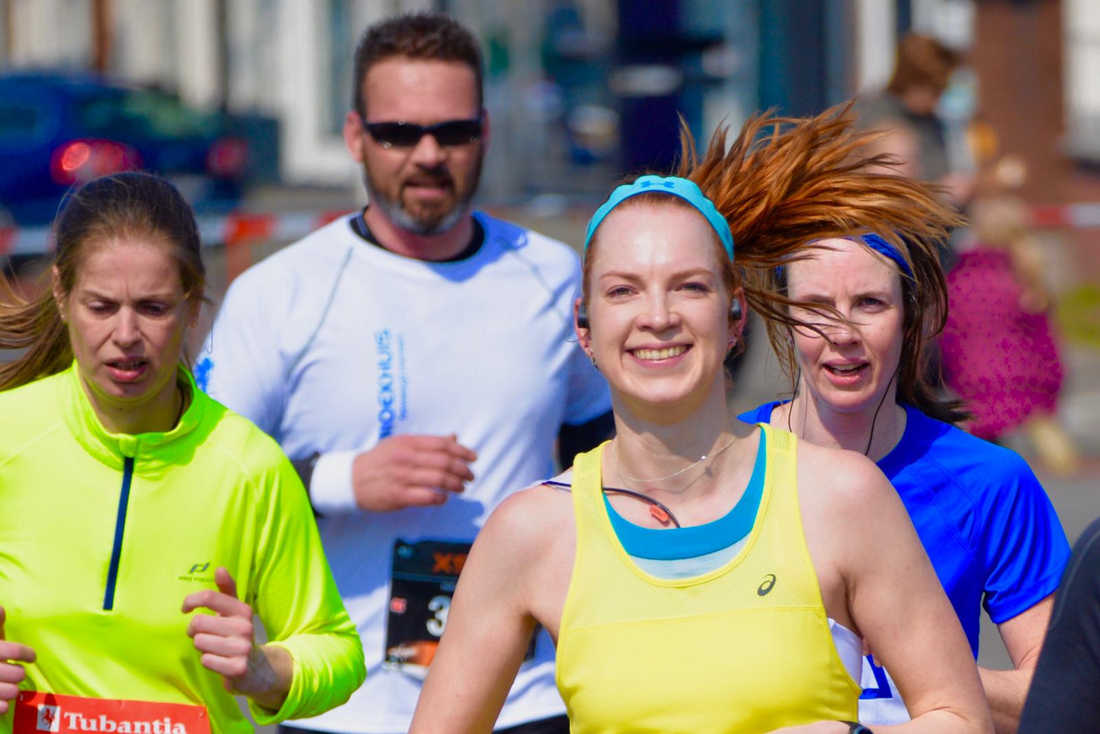 Ik loop, met Katrin achter me aan, de fietssnelweg op. Iets verderop zie ik mijn moeder al staan met de fiets. Zij fietst ook een stukje mee. Het geklets van Katrin en mama is best fijn, ook al zeg ik niet veel het voelt heel fijn om niet alleen te hoeven lopen. Want dat zou het zijn, er is geen publiek, volle bak tegenwind en een gemeen klimmetje. Veel lopers zijn gaan lopen. Maar ik ga eigenlijk echt nog heel lekker! Bij km 37 staat Dominique met mijn laatste gelletje; de genadeslag met 150mg caffeine ;). EN CONFETTI! 🎉 Zó leuk.