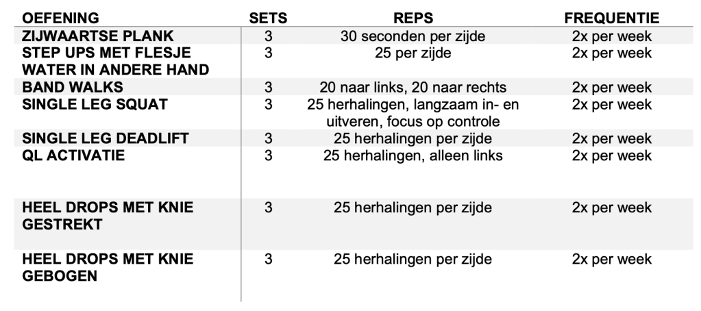 Hier heeft Maikel een mooi oefenschema bij opgesteld met de verschillende spiertrainingen. En alvast een spoiler alert; ik merk daar nu al verschil van!